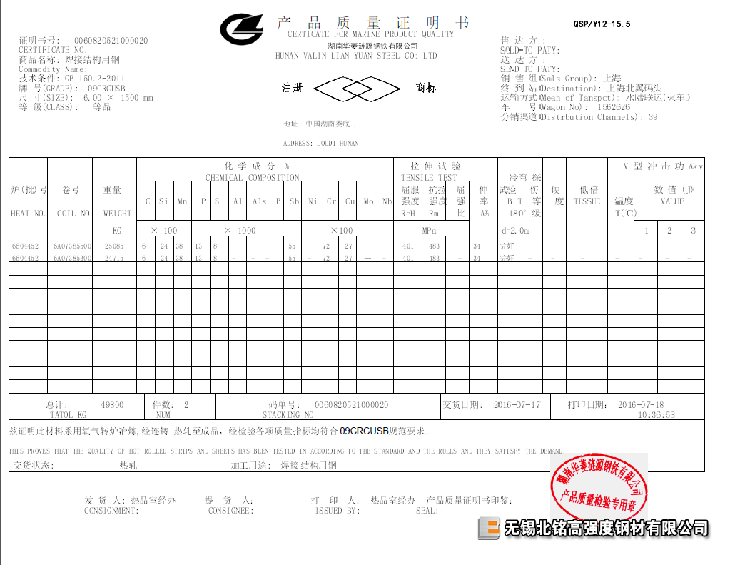 所有材料均有對應爐批號鋼廠質量證明書!保耐低溫沖擊、保折彎!