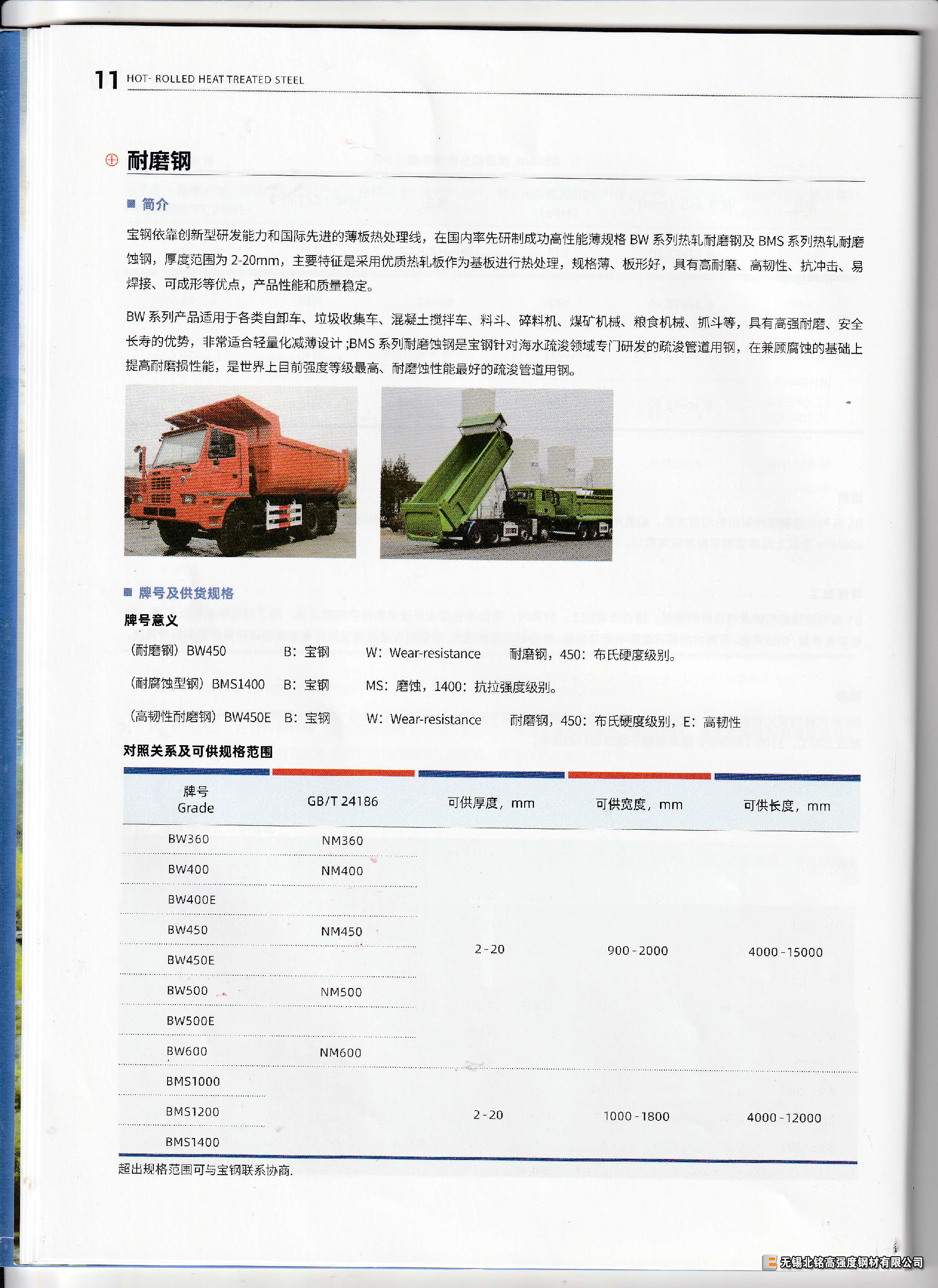 高強度鋼Q550D,Q690D,工程機械高強鋼BS650MCK2(MCJ4),BS700MCK2(MCJ4),BS700MCK4,BS800D/E,BS900D/E,BS960D/E,BS1000D/E,BS1300D/E, 高猛耐磨板鋼MN13,耐低溫耐磨鋼NM400E,NM450E,NM500E,NM600,BMS1000,BMS1200,BMS1400,BST900L,BST1000L, 超強磁軛鋼Wder800,Wder900 ,WDER1000,WSER1100 。