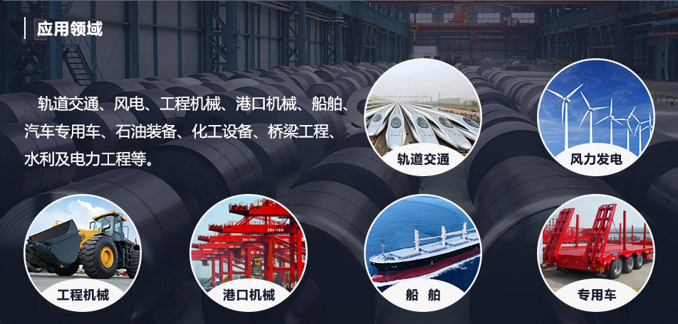 造船及海洋平臺用鋼船板 AH32/36、DH32/36、EH32/36、F32/F36、D40、E40、F40(九國認證CCS、LR、DNV、BV、GL、RA、ABS、RA、KR)。