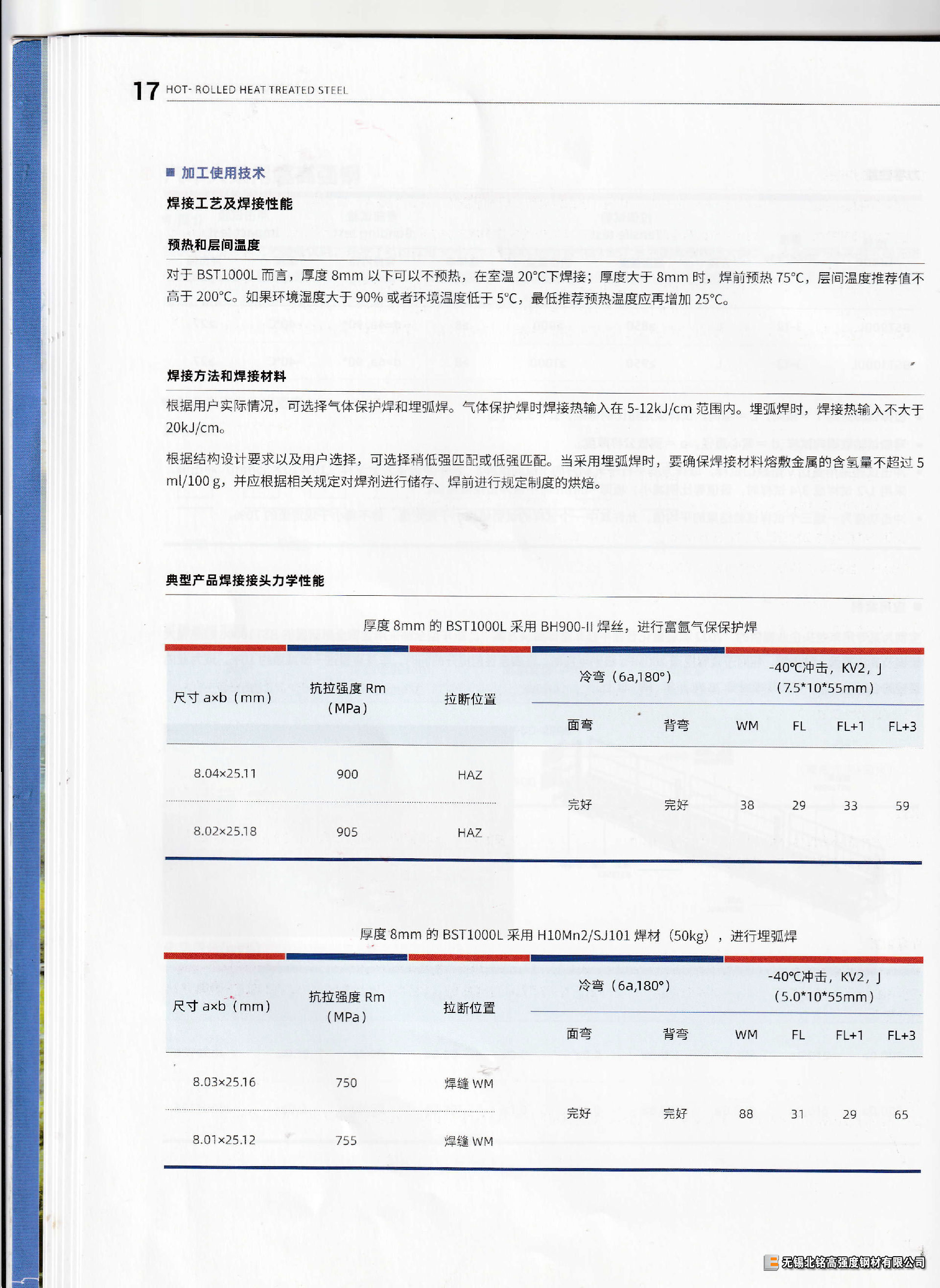 寶鋼超高強大梁鋼BST900L,BST1000L 折彎 焊接性能要求